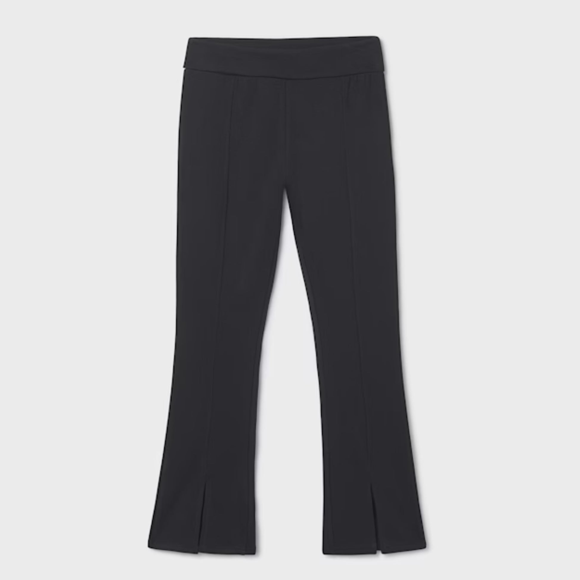 Flare bottom with a pleated line down the front of each leg. Perfect for relaxed tees, sweaters and more. A true wardrobe staple!